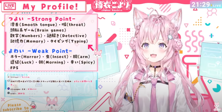 博衣こよりさんは、初配信でよわいものとして「ホラーとFPS」を挙げていました!